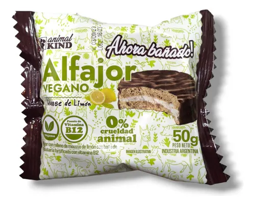 Alfajor Vegano Mousse de Limon bañado en chocolate Animal King c/u