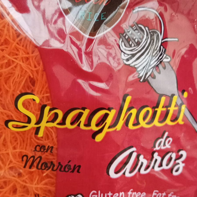 Spaghetti de arroz con morron