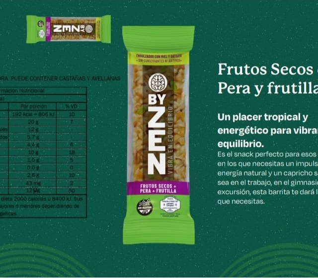 Barritas Zen Sin Tacc de Frutos Secos con Pera y Frutilla